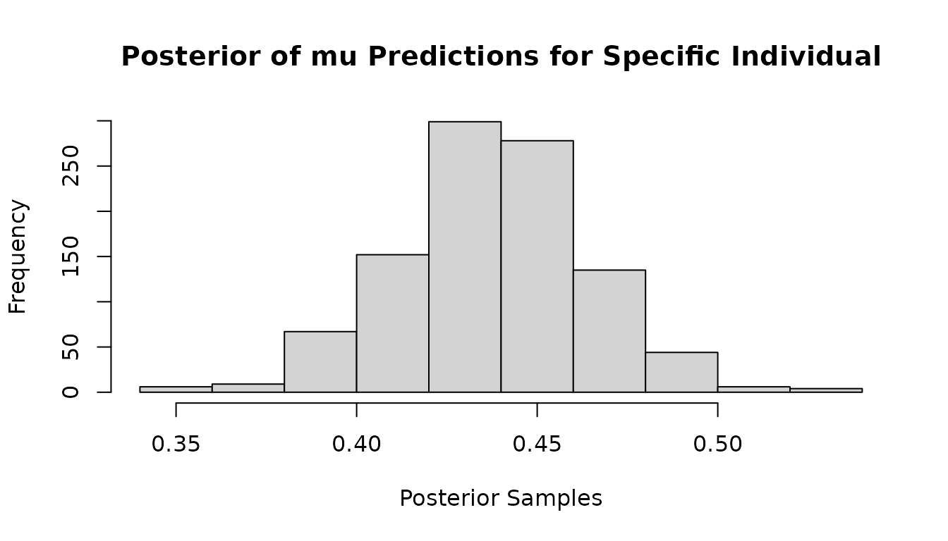 main="Posterior of mu Predictions for Specific Individual")